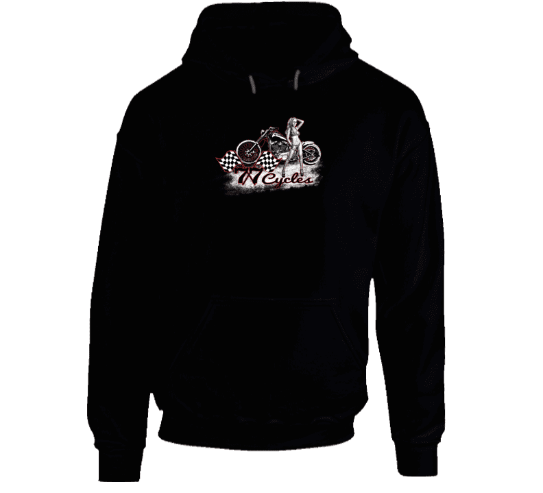 77 Cycles Biker Chick In Front Of Bike Hoodie